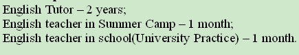 國籍: 烏克蘭 求職意向: 教師