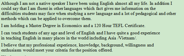 外教現(xiàn)在沒(méi)有工作,現(xiàn)在廣東深圳,希望可以盡快到崗。 |