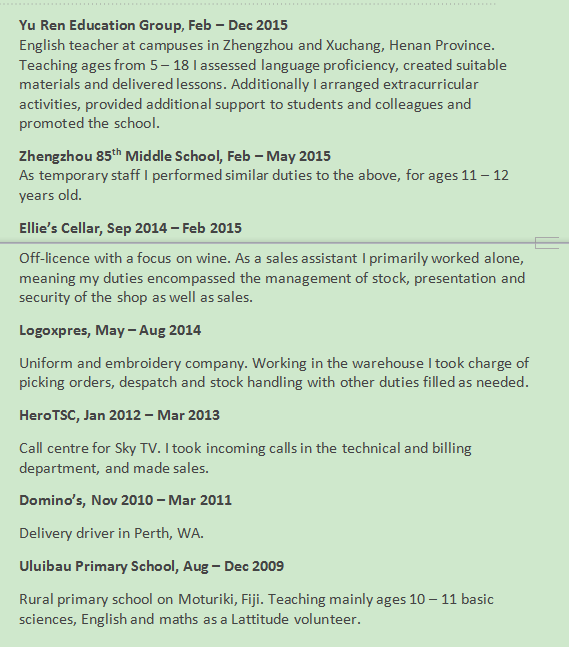 面試詳情:『小城市,最好是南方城市』的用人單位可約該外教面試,目前還沒(méi)有用人單位約該外教面試。