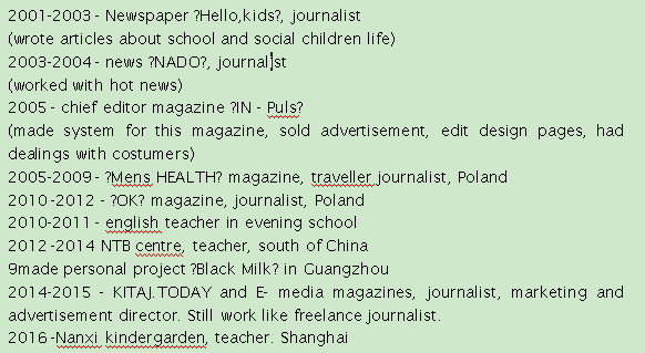 出生在車臣 現(xiàn)在是波蘭烏克蘭雙國籍 現(xiàn)在上海靜安寺附近 老公是美國人 有3-6歲的經驗 現(xiàn)在是L簽 1月份換工簽 求職上海 |