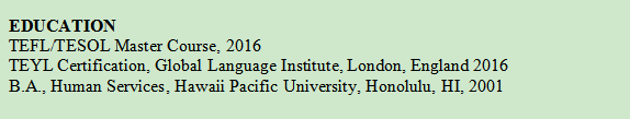 國(guó)籍: 加拿大 求職意向: 教師