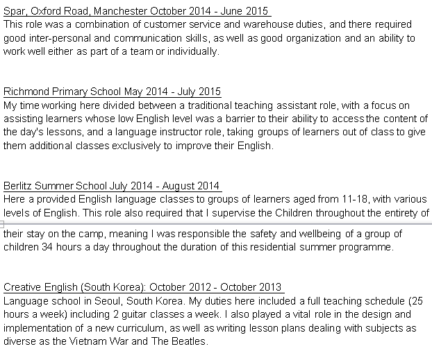 國籍: 愛爾蘭 求職意向: 教師