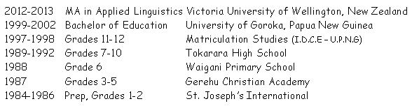 巴布亞新幾內(nèi)亞 女 教育學(xué)本科 新西蘭碩士學(xué)位 |