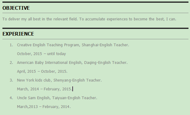 國籍: 其他 求職意向: 教師