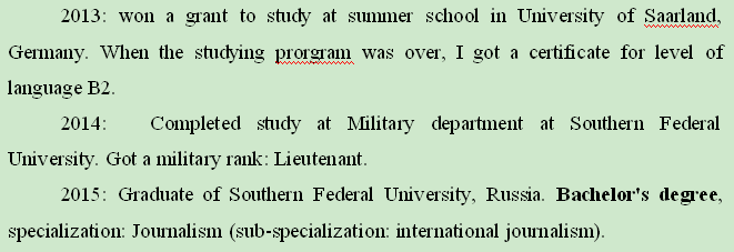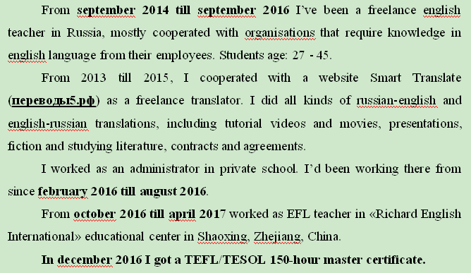 國籍: 俄羅斯 求職意向: 教師