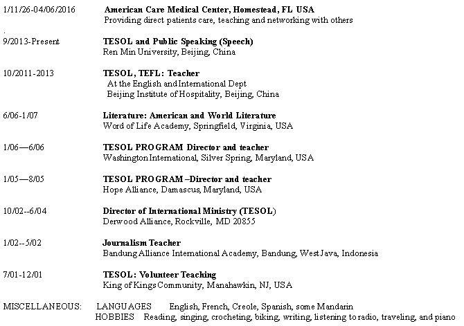 國(guó)籍: 美國(guó) 求職意向: 教師