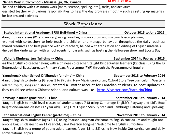 國籍: 其他 求職意向: 教師