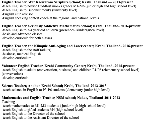 國籍: 其他 求職意向: 教師
