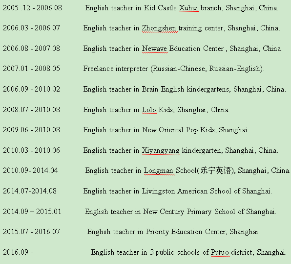 國(guó)籍: 烏克蘭 求職意向: 教師