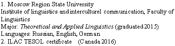 俄羅斯女 有本科 TEFL 在本國 有經(jīng)驗 |