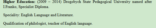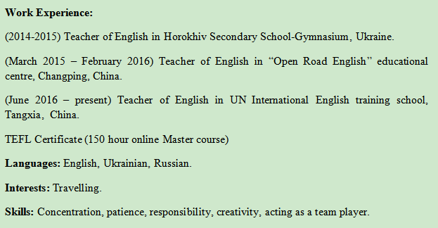 國籍: 烏克蘭 求職意向: 教師