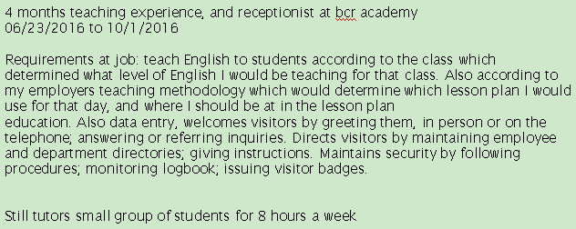 美國(guó)男 沒(méi)本科有TESOL 自帶M簽來(lái) 現(xiàn)在本國(guó) 8000-15000 不挑地方 |