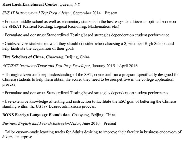 美國(guó)男 英語(yǔ)文學(xué)專業(yè) 10年S2簽 現(xiàn)在北京朝陽(yáng) 可以教SAT/ACT/TOEFL 文學(xué) 20000 |