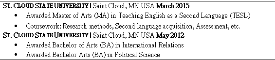 國(guó)籍: 美國(guó) 求職意向: 教師