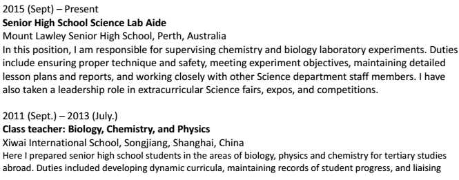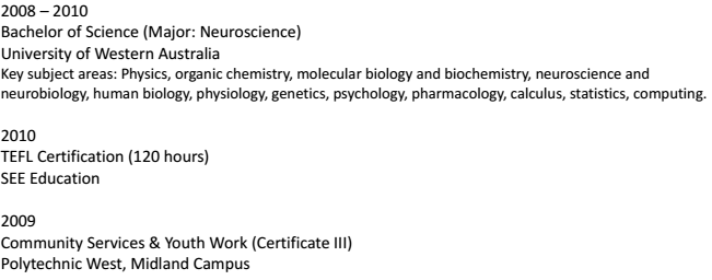 澳大利亞男 本科TEFL 5年經(jīng)驗(yàn) 教生物化學(xué)物理英語 數(shù)學(xué)統(tǒng)計(jì)學(xué)科學(xué) |