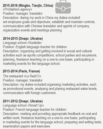 國(guó)籍: 烏克蘭 求職意向: 教師