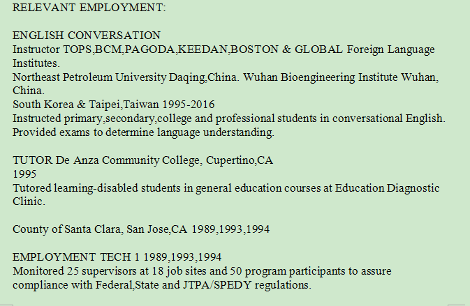 外教的工作經(jīng)歷