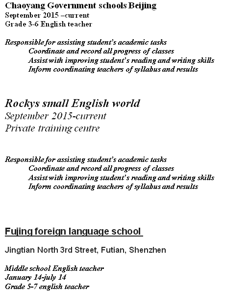 工簽 求職17年9月 南方幼兒園或小學(xué) |