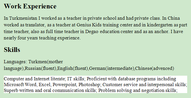 國(guó)籍: 美國(guó) 求職意向: 教師