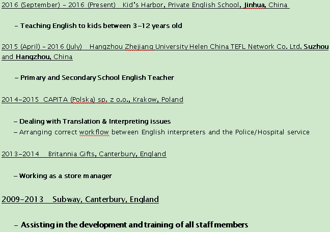 一對波蘭 現(xiàn)在金華 碩士TEFL 工簽 求職4月底的工作 15000+住宿 不挑地方 幼兒園最好 |