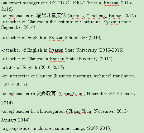 國(guó)籍: 俄羅斯 求職意向: 教師