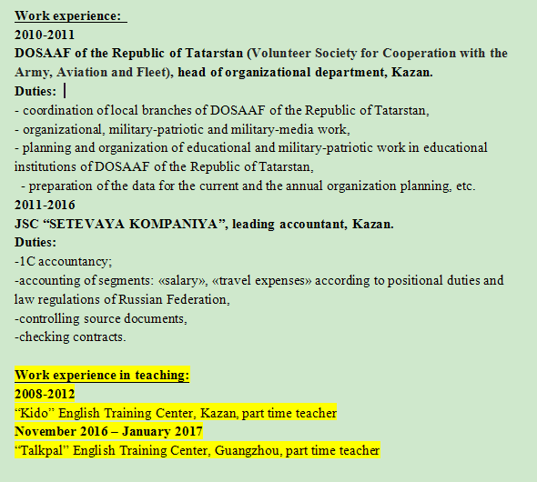 國籍: 俄羅斯 求職意向: 教師