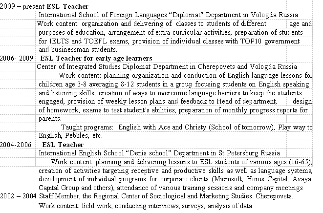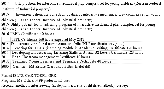 國籍: 俄羅斯 求職意向: 教師