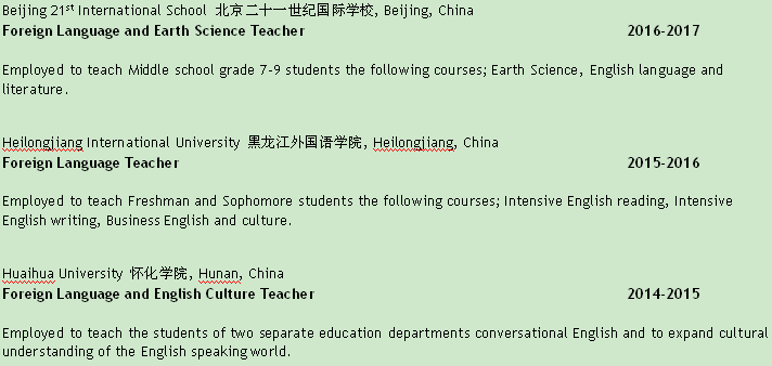 國(guó)籍: 俄羅斯 求職意向: 教師