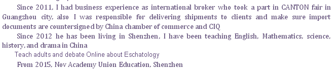埃及男 在深圳 商務簽 求職深圳或附近 盡快到崗 |