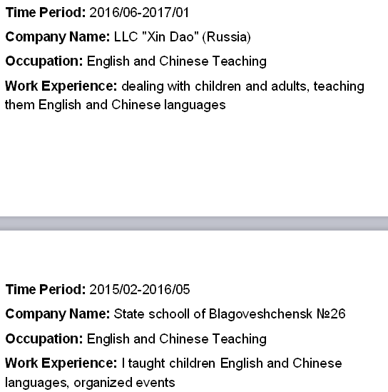 學歷: 本科 期望薪資: 8000-11000(Yuan/M)