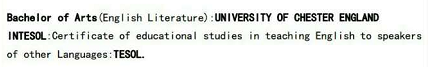 津巴布韋 在英國讀的本科 英語文學專業(yè)本科 有TESOL 學生簽 現(xiàn)在河北燕郊 4.13結(jié)束合同 不挑地方 |