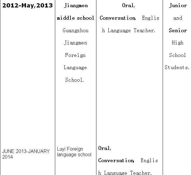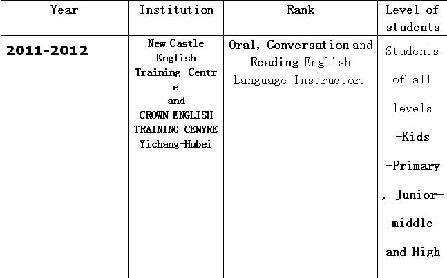 國籍: 英國 求職意向: 教師