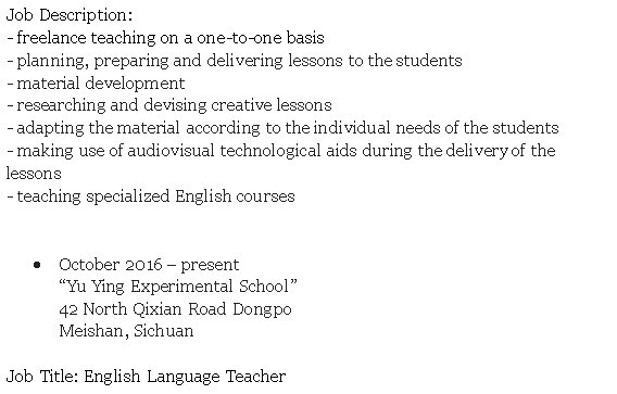 國籍: 其他 求職意向: 教師