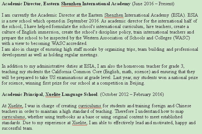國籍: 美國       求職意向: 教師