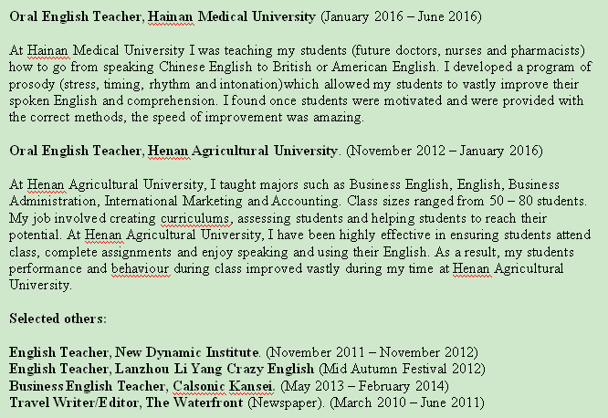 外教的工作經歷