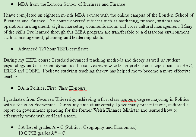 外教的教育經歷