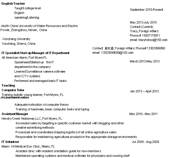 國(guó)籍: 美國(guó)       求職意向: 教師