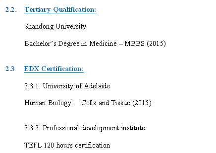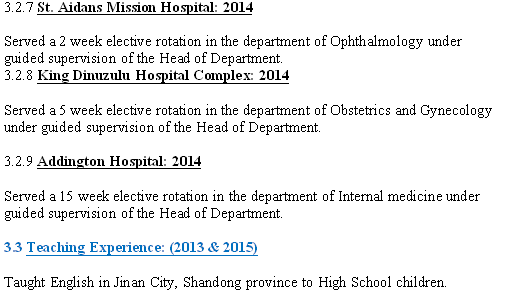 國籍: 津巴布韋 求職意向: 教師