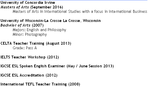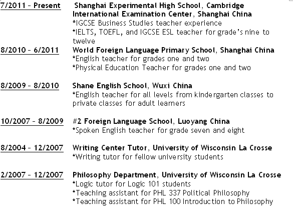 國(guó)籍: 美國(guó) 求職意向: 教師