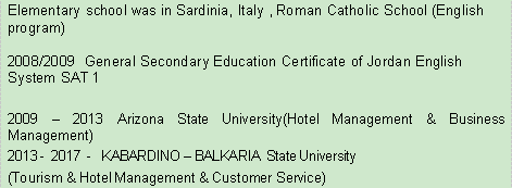 約旦國籍,意大利和約旦混血,有2個本科證書,一個在美國讀的,另一個在俄羅斯讀的,簽證可以自理。 |