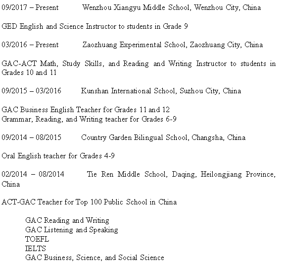 美國(guó)華裔,求職高中職位,可以教數(shù)學(xué),化學(xué),科學(xué),生物 |