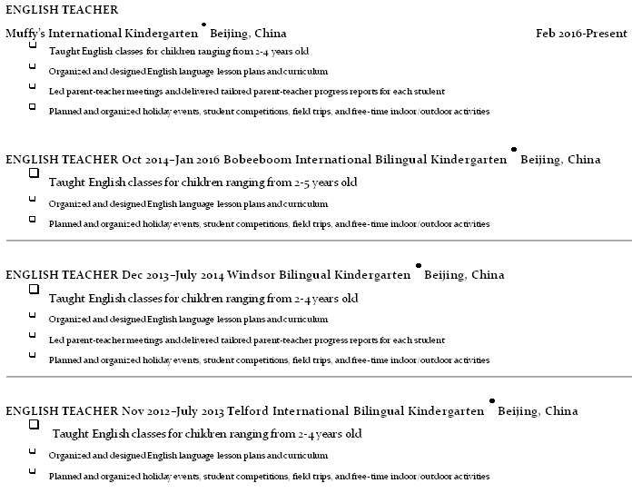 國籍: 美國 求職意向: 教師