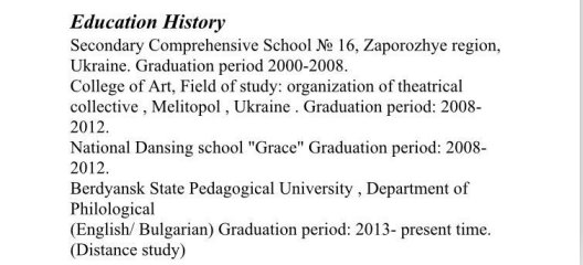 國(guó)籍: 俄羅斯 求職意向: 教師