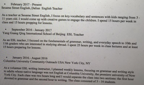 外教的工作經(jīng)歷