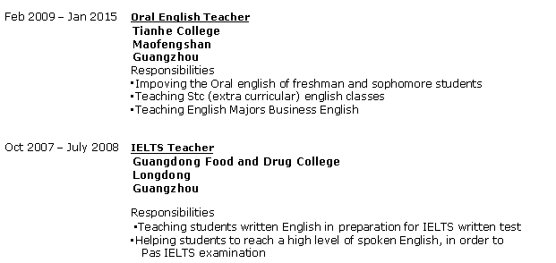外教的工作經(jīng)歷