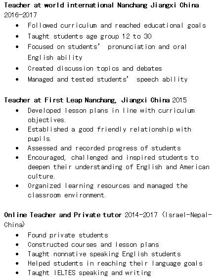 面試詳情:『全國均可』的用人單位可約該外教面試,目前還沒有用人單位約該外教面試。