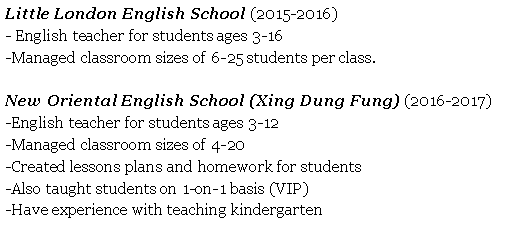 國(guó)籍: 美國(guó) 求職意向: 教師