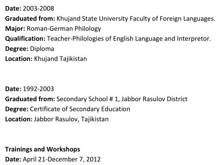 塔吉克斯坦外教,英語專業(yè)本科,TEFL,在美國接受過英語教學(xué)方面的培訓(xùn),要求工簽。 |