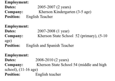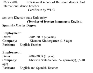 國(guó)籍: 俄羅斯 求職意向: 教師