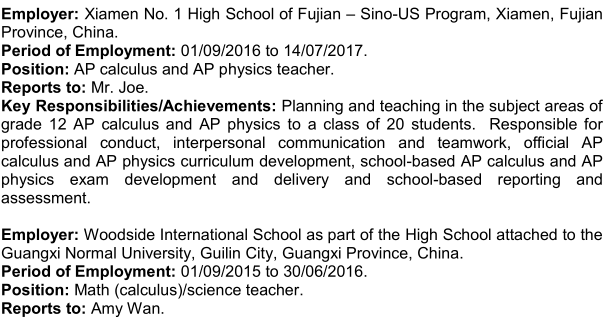 可以教AP微積分?jǐn)?shù)學(xué)物理,6.30結(jié)束合同。工簽轉(zhuǎn)聘。 |